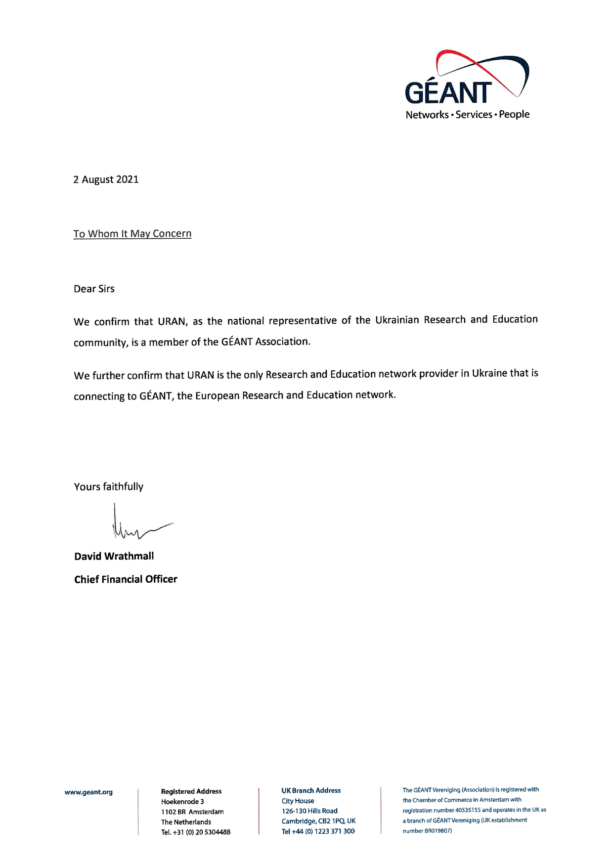 GÉANT і єдина має контракт з оператором мережі GÉANT – британською